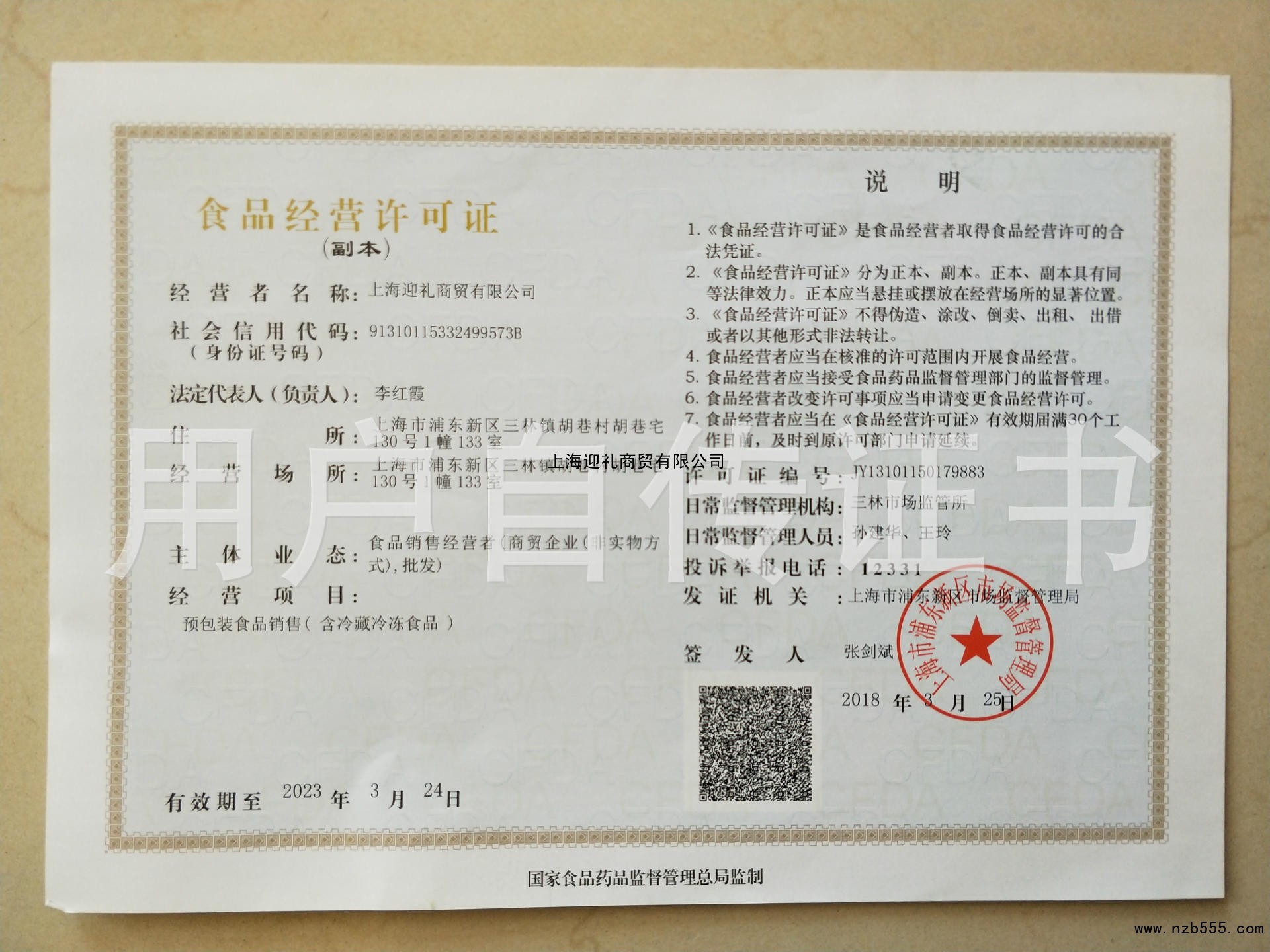 食品經營許可證