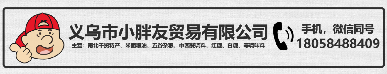 義烏小胖友貿(mào)易有點公司,南北干貨、雜糧、紅糖、水產(chǎn)干制品等產(chǎn)品專業(yè)生產(chǎn)加工的公司,擁有完整、科學(xué)的質(zhì)量管理體系。小胖友貿(mào)易有限公司的誠信、實力和產(chǎn)品質(zhì)量獲得業(yè)界的認(rèn)可。歡迎各界朋友蒞臨參觀、指導(dǎo)和業(yè)務(wù)洽 [