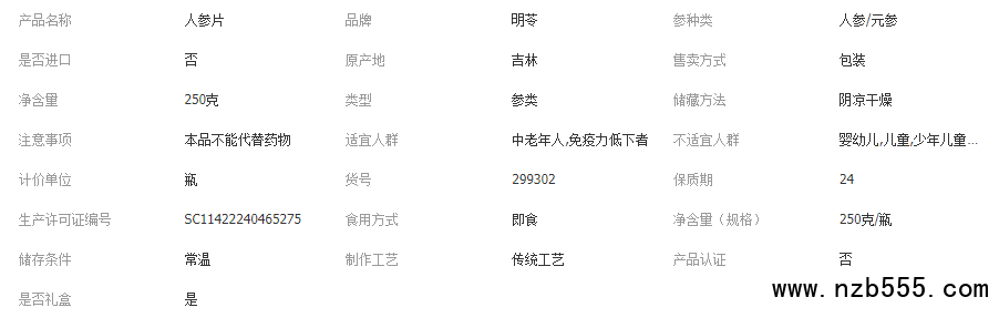 人參片禮盒裝東北特產