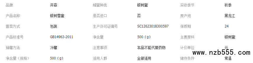 開森蜂業 東北特產 椴樹雪蜜 椴樹蜜蜂蜜 結晶蜜 自產原蜜500g